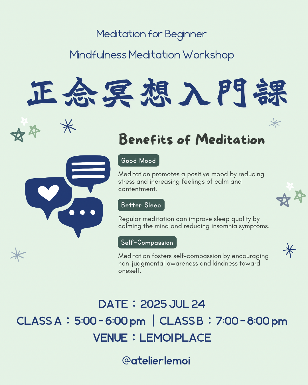 保持當下覺察,讓你不再沉溺於頭腦的紛亂思緒,亦能更從容地面對情緒的波動。通過冥想(Meditation),我們可以有意識地探索內心,清晰地感受真實的自己。
