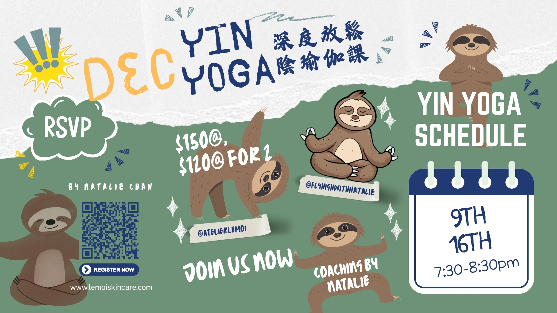 💰 費用:$150/1節;$240/ 2節同報:$240 / 二人同行(場地提供瑜伽蓆及瑜伽磚)